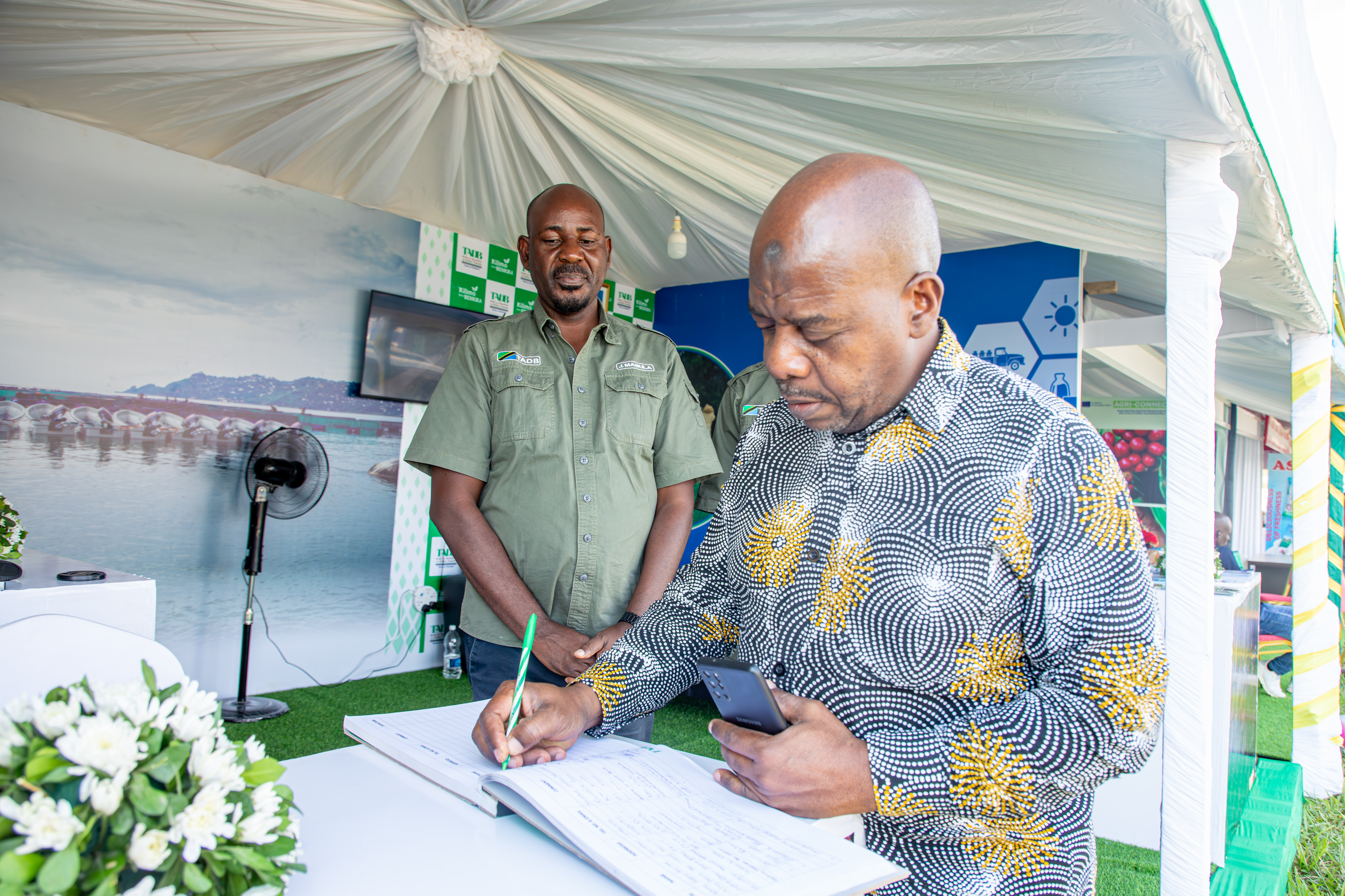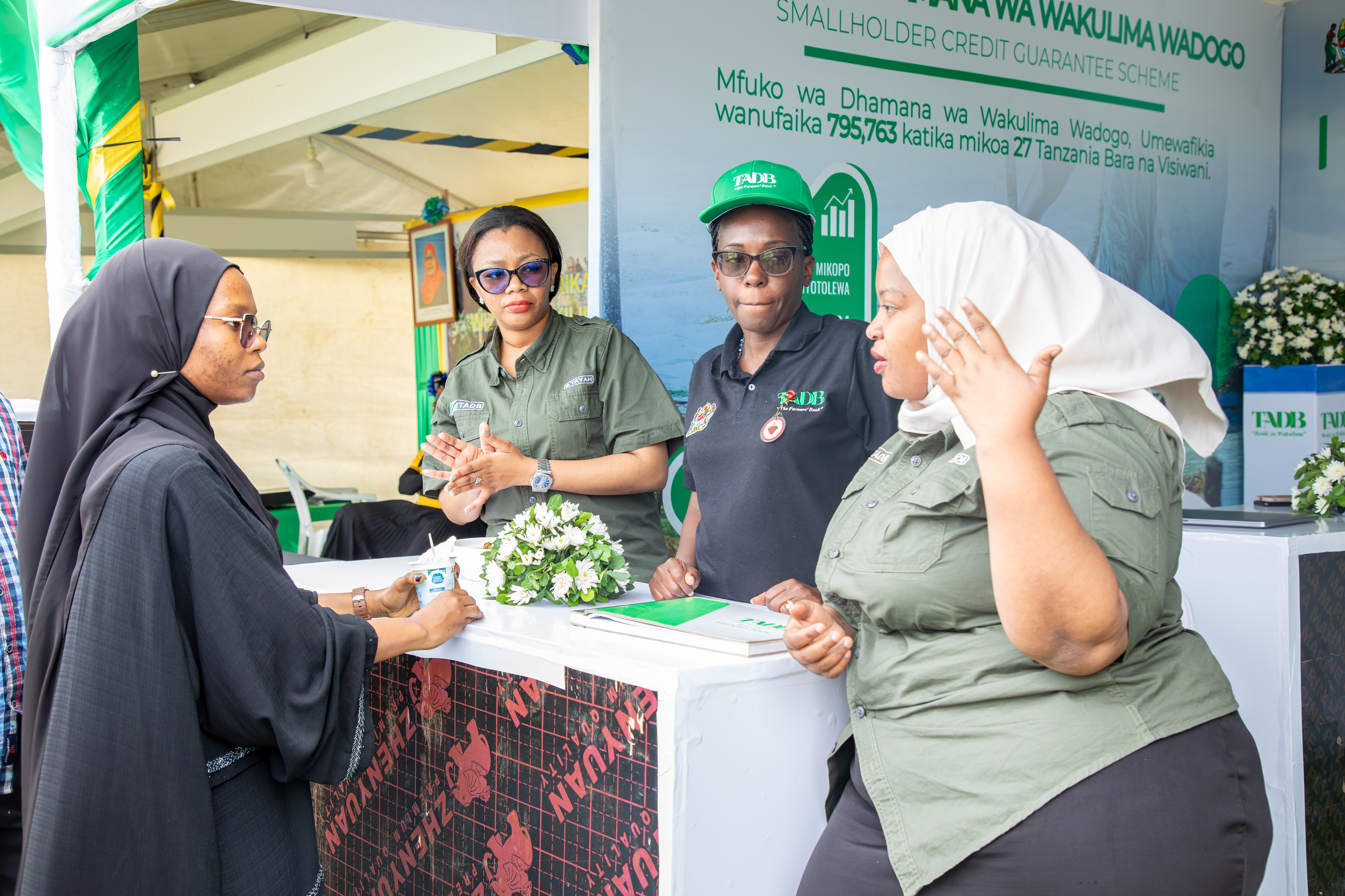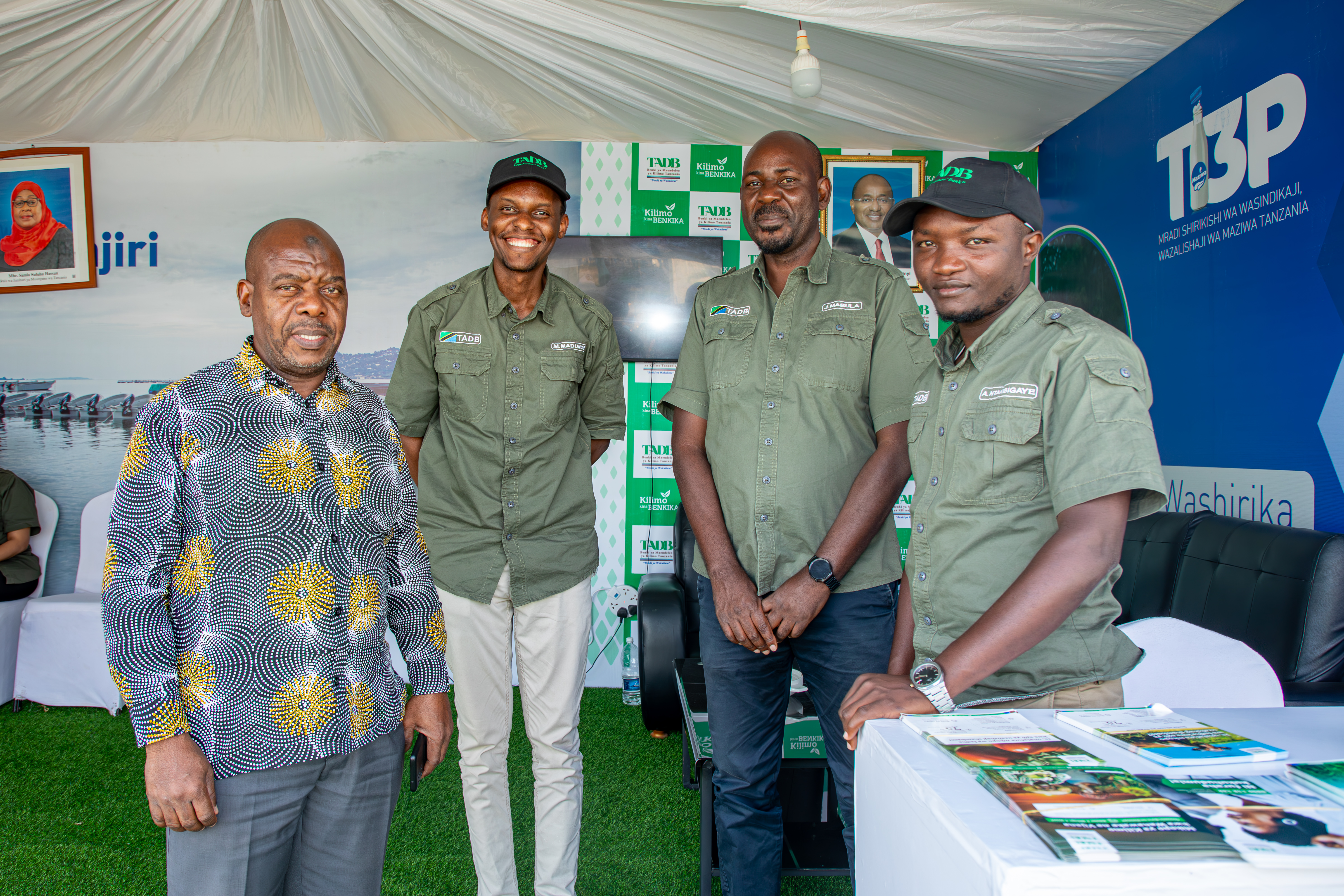 TADB staff, led by the Eastern Zonal Manager, Mr. Michael Madundo, received and provided information to visitors and stakeholders in agriculture, livestock, and fisheries who visited the TADB booth at the Nane Nane exhibitions, held at Dole Grounds, Kizimbani, Unguja. On August 1, 2024, the Deputy Permanent Secretary of the Ministry of Agriculture, Irrigation, Natural Resources, and Livestock, Hon. Dr. Omar Amir (first from the left), joined TADB staff for a group photo during his visit to the bank’s booth at the Nane Nane exhibitions in Zanzibar.